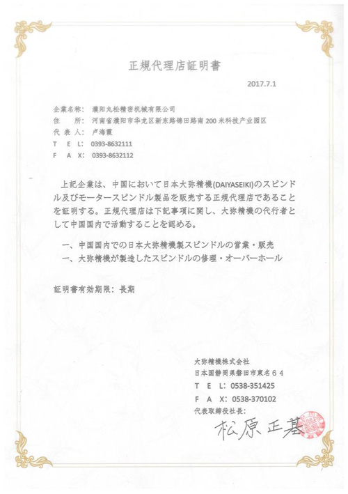 濮陽丸松精密機械有限公司是日本大彌精機株式會社在中國的代理商,公司專業(yè)從事精密、超精密主軸、電主軸的開發(fā)設計、生產(chǎn)制造。從針對客戶需求設計專用主軸,到生產(chǎn)零部件,試運行交付客戶,周期可在三個月內(nèi)完成。主要客戶均為日本知名企業(yè)。我公司自2006年成立至今,一直從事主軸零部件的生產(chǎn)及組裝,曾給富士康深圳、昆山、濟源工廠生產(chǎn)超過3000根主軸。常熟光洋、上海東培、杭州人本、濮陽貝英等眾多國內(nèi)廠商也在使用我公司生產(chǎn)的主軸。
